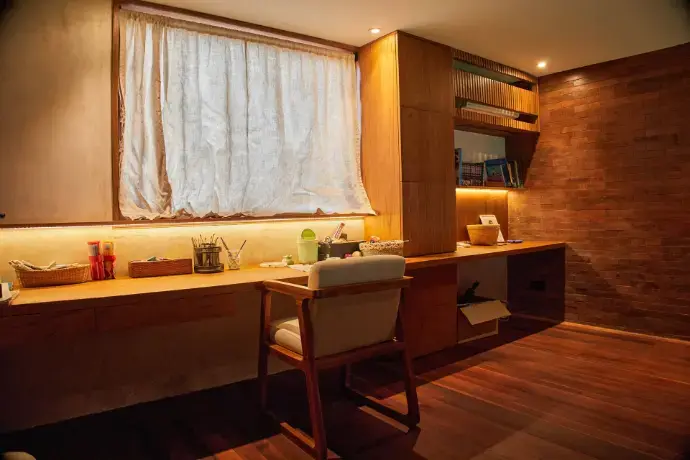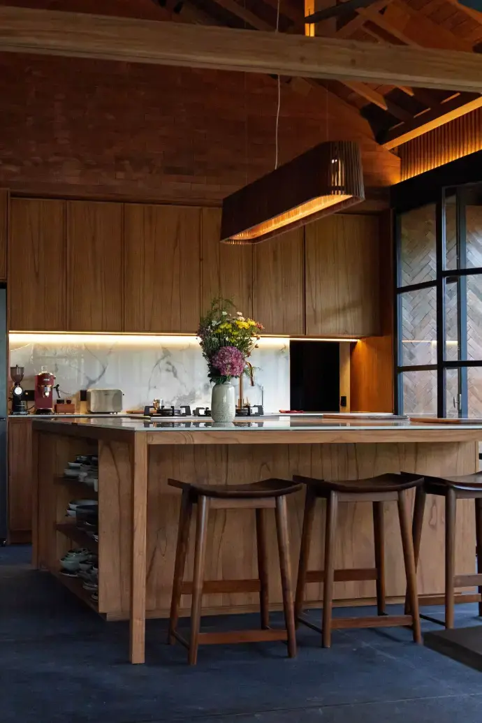 Terracotta and natural wood take the lead in this quietly composed space, bringing warmth, depth, and calm to every corner. Rooted in restraint and softness, the interiors speak to a way of living that is both considered and connected to nature.
