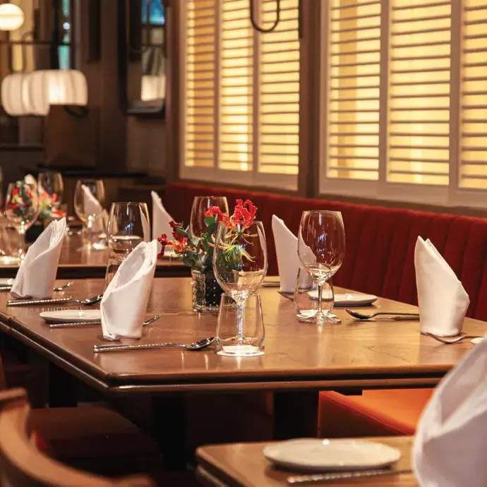 • Custom-designed dining chairs, tables, and service stations