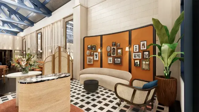 • Decorative wall panels that subtly echo the building’s warehouse origins