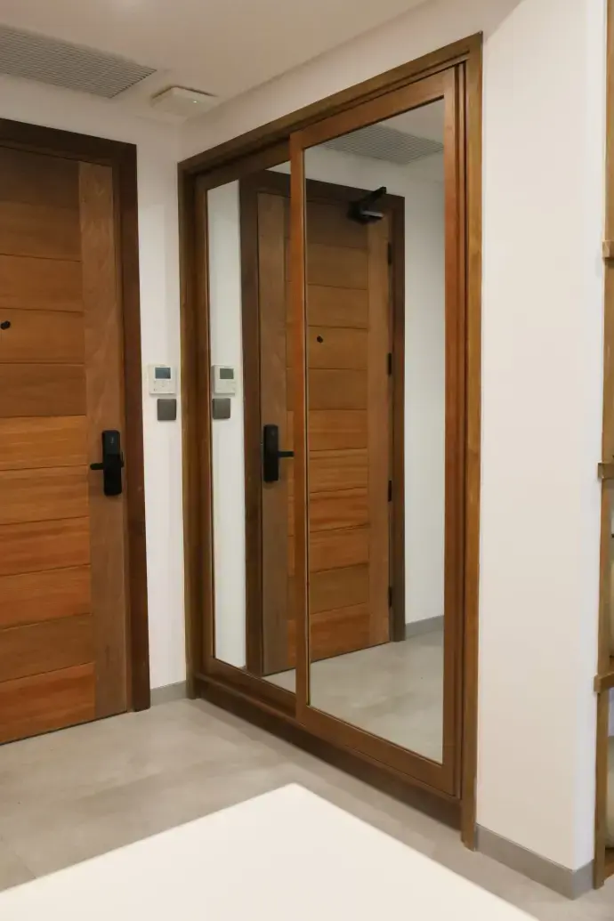 Our team produced and installed wardrobes, kitchen units, and vanities across both Sunny Aparts II and Sunny Muse. For Sunny Muse specifically, we also created a full hallway paneling feature to add warmth and texture to the transitional space.